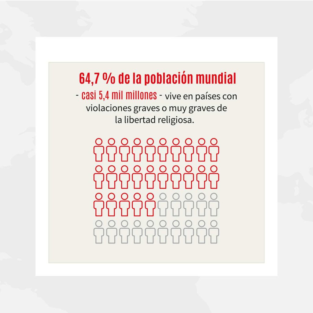 Actualmente, según el ‘Informe sobre la libertad religiosa en el mundo 2025’ de ACN, unos 5.400 millones de personas viven en 62 países donde se ha intensificado la persecución, la opresión o la discriminación, tanto por parte de actores estatales como no estatales.