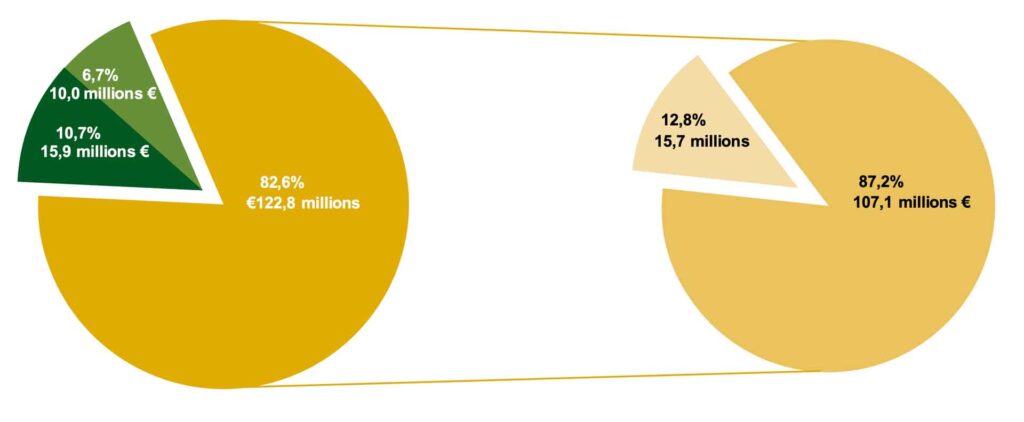 En 2023, 7 689 demandes d’aide nous sont parvenues du monde entier. Grâce à la générosité de nos bienfaiteurs, nous avons enregistré 143,7 millions d’euros qui, avec les 0,8 million d’euros de réserves des années précédentes, ont permis de financer des activités à hauteur de 144,5 millions d’euros. Comme le montre le graphique, la plus grande part de nos dépenses a été consacrée aux charges liées à notre mission, c’est-à-dire à des projets concrets, à l’information et à des activités de prière.